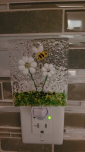 Mona’s passion for creating art with glass began in 2016. After attending workshops for glass fusing and stained glass she was hooked. In the early days, she continued learning and honing her skills in her kitchen with a small microwave kiln. Over time, she discovered that incorporating other mediums into her work (ie: wood) has provided another level of unique dimension to her pieces. Now retired and a full-time resident in the Village of Gagetown, Mona enjoys spending time in her studio creating beautiful jewelry, sun catchers, Christmas tree ornaments, plates, night-lights and tea-light holders to name a few, along with one-of-kind pieces that she hopes will find a special place in your home or become the perfect gift for that special someone.
